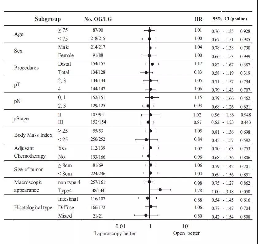 总结:本研究发现腹腔镜胃手术治疗进展期胃癌,疗效不比开放手术差。